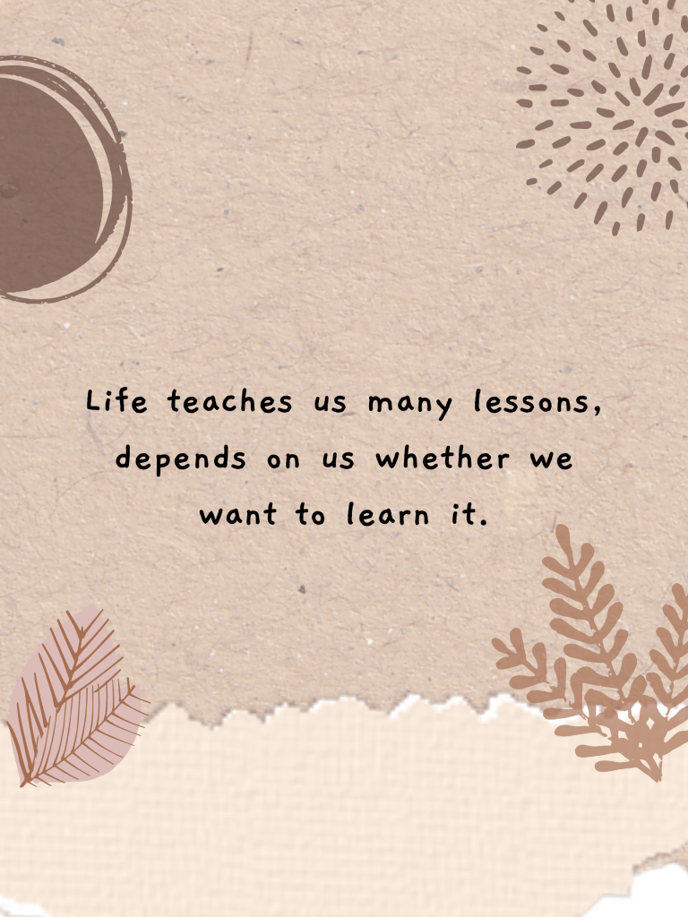 Life teaches us many lessons, it depends on us whether we want to learn them.