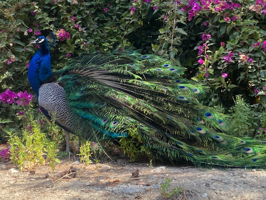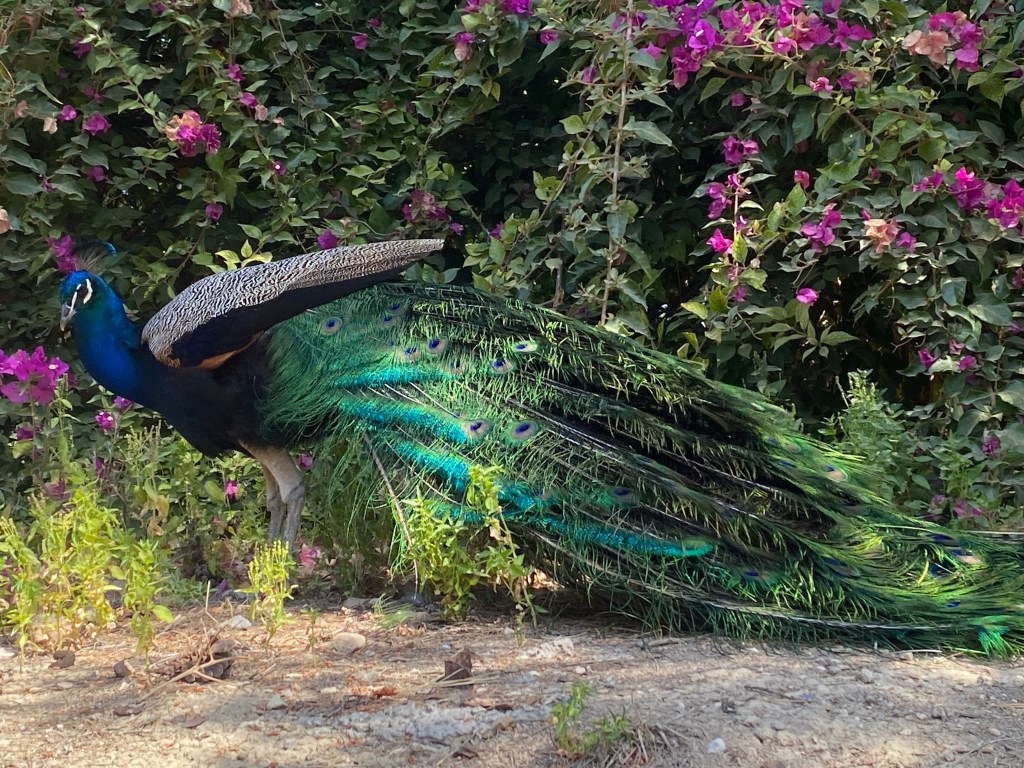 As if a Greek god wanted to gift me with a peacock sighting outside the “box,” I encountered an elegant peacock roaming freely on the grounds of the monumental Palace of Minos in Knossos (Heraklion, Crete). It appeared just as I entered the palace, adding to the magic of the moment.