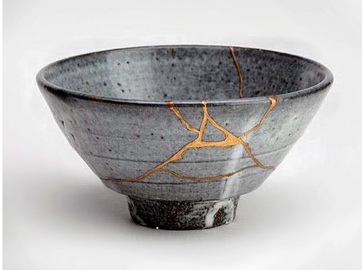 Enter the ancient Japanese art of Kintsugi—the practice of repairing broken pottery with lacquer mixed with powdered gold.