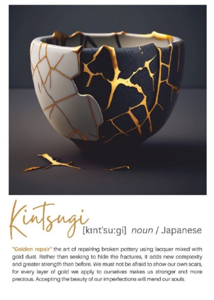 Kintsugi doesn’t pretend the break never happened. It doesn’t hide the damage. Instead, it honors it, emphasizing the fractures, not to glorify the break, but to highlight the healing.